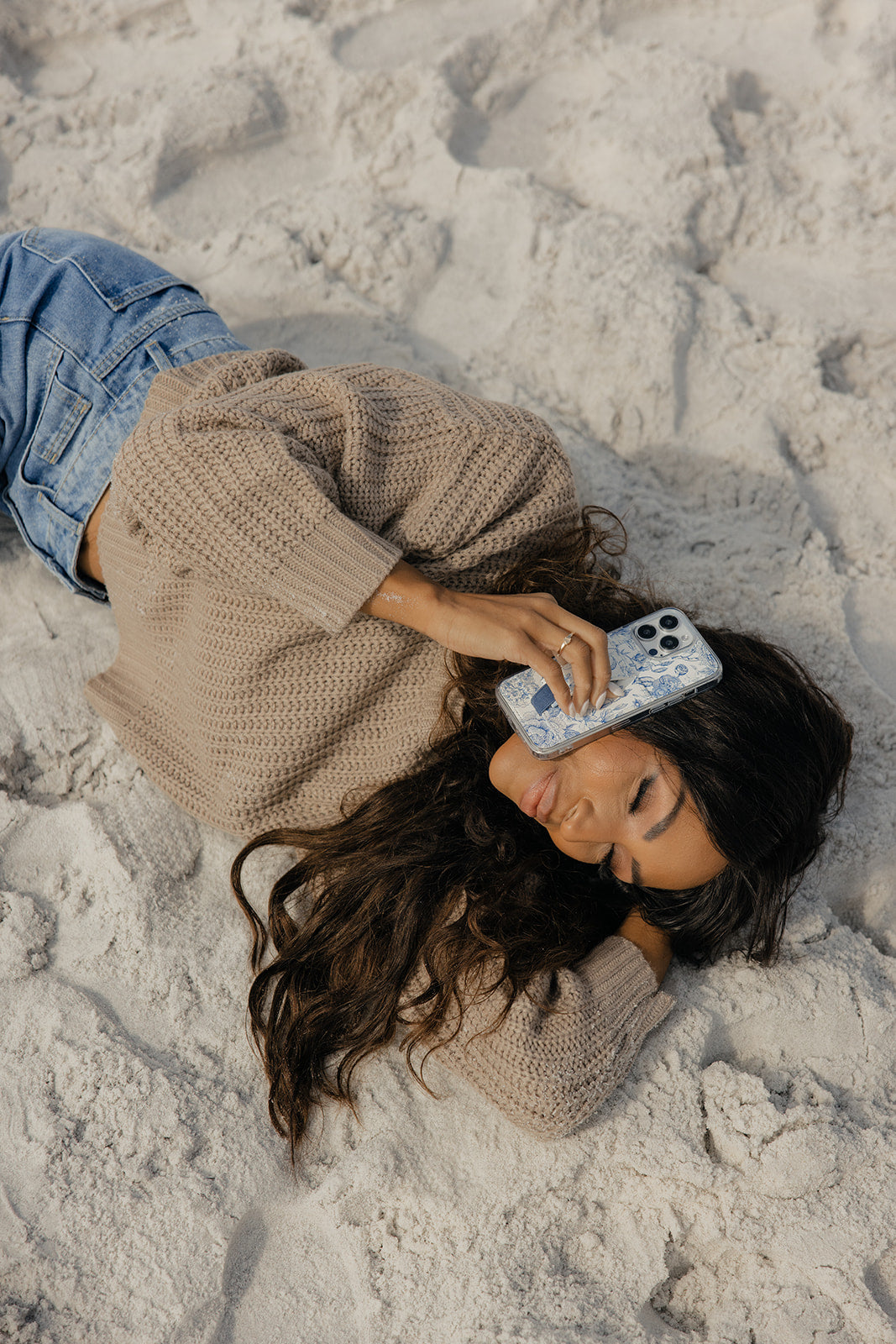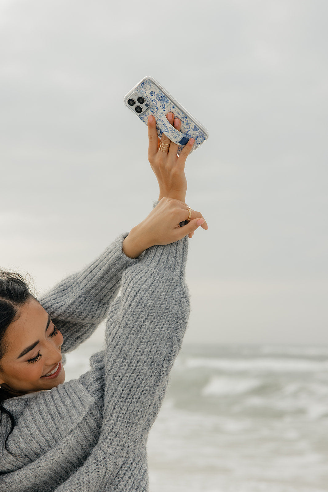 Finger Strap Color: Blue deltware floral design on a white background