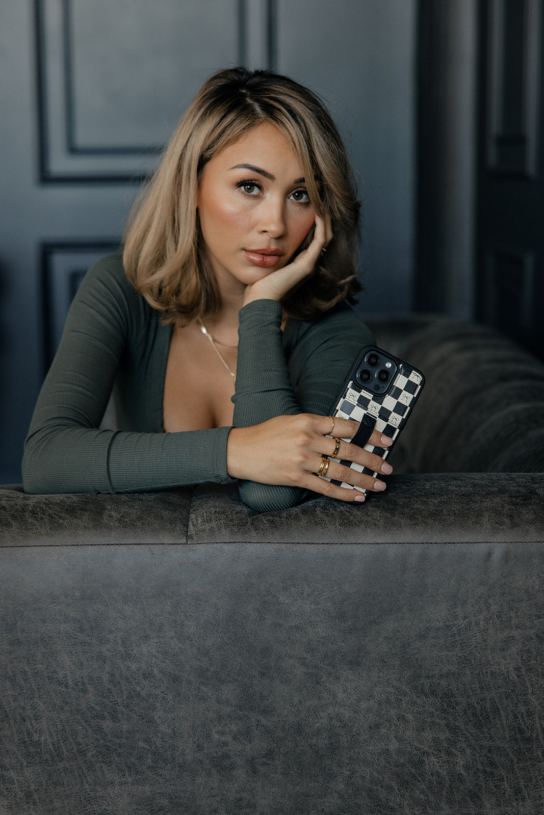 Case Design: Black and white checker with black bows