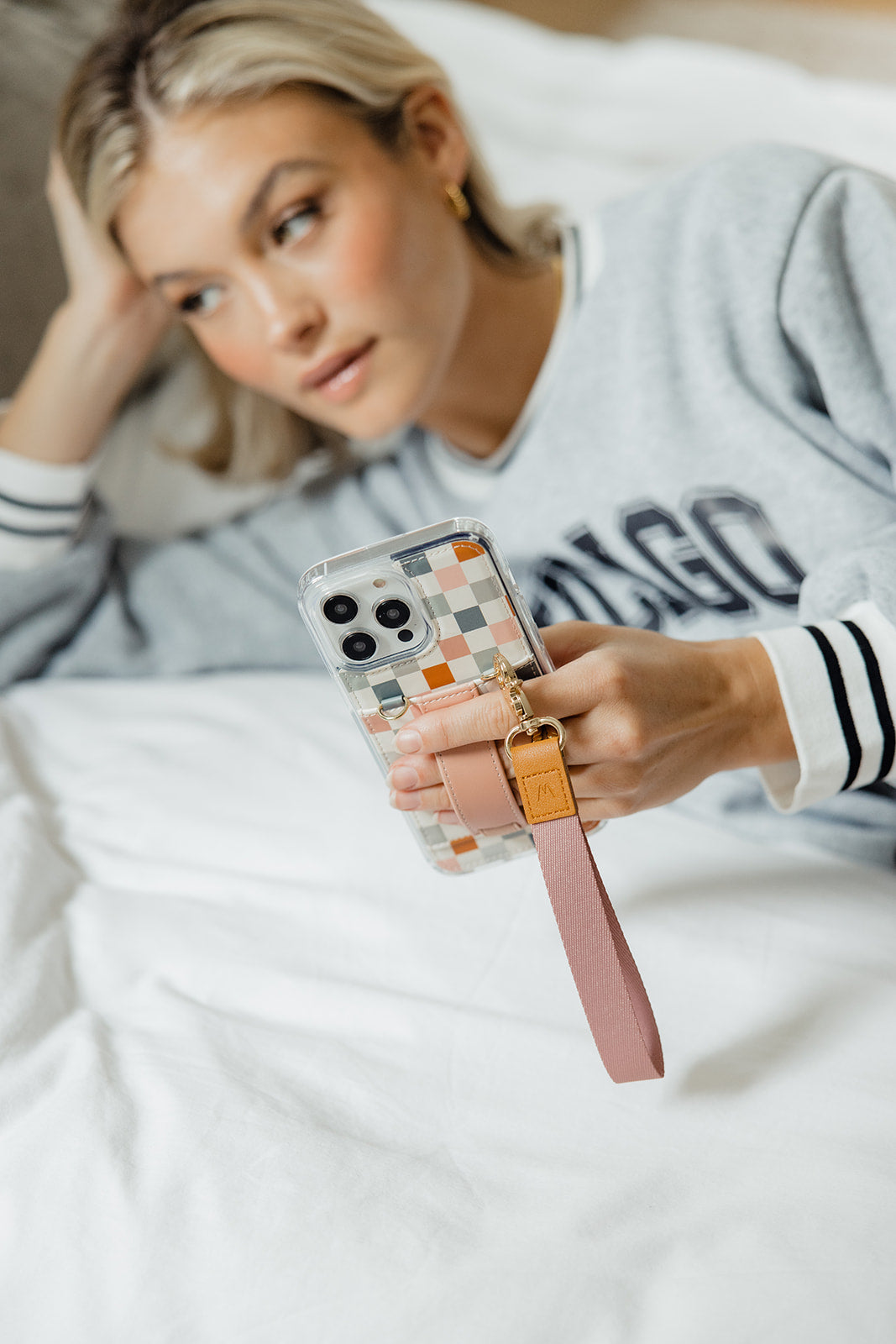 Pair this case with the coordinating Coastal Check wrist lanyard and Apple watch band!