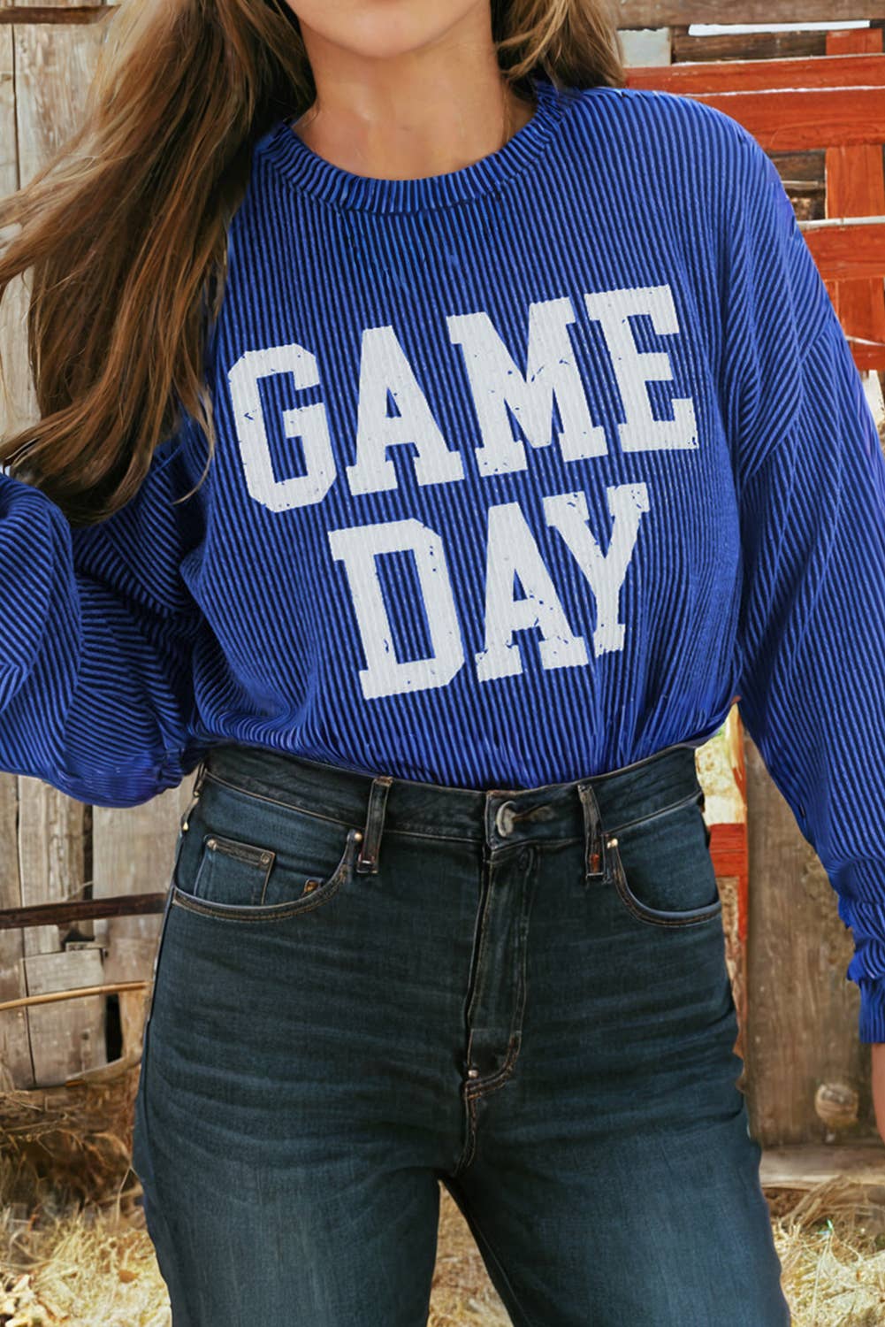 Corded GAME DAY Graphic Long Sleeve Crewneck Top