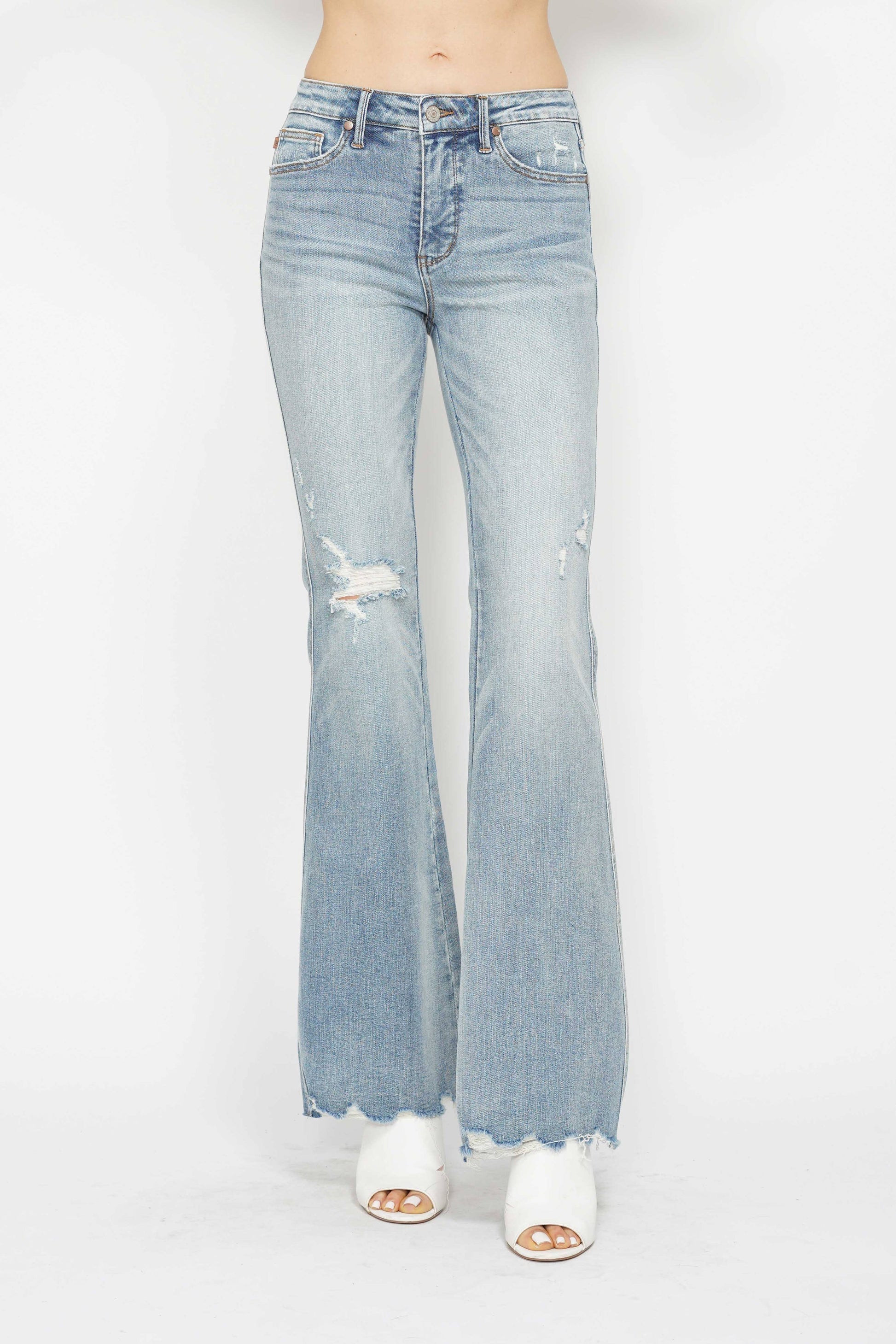 MR Tummy Control Destroy Flare, , 91% Cotton / 7% Polyester / 2% Spandex, FRONT RISE:10", INSEAM:33 1/2",