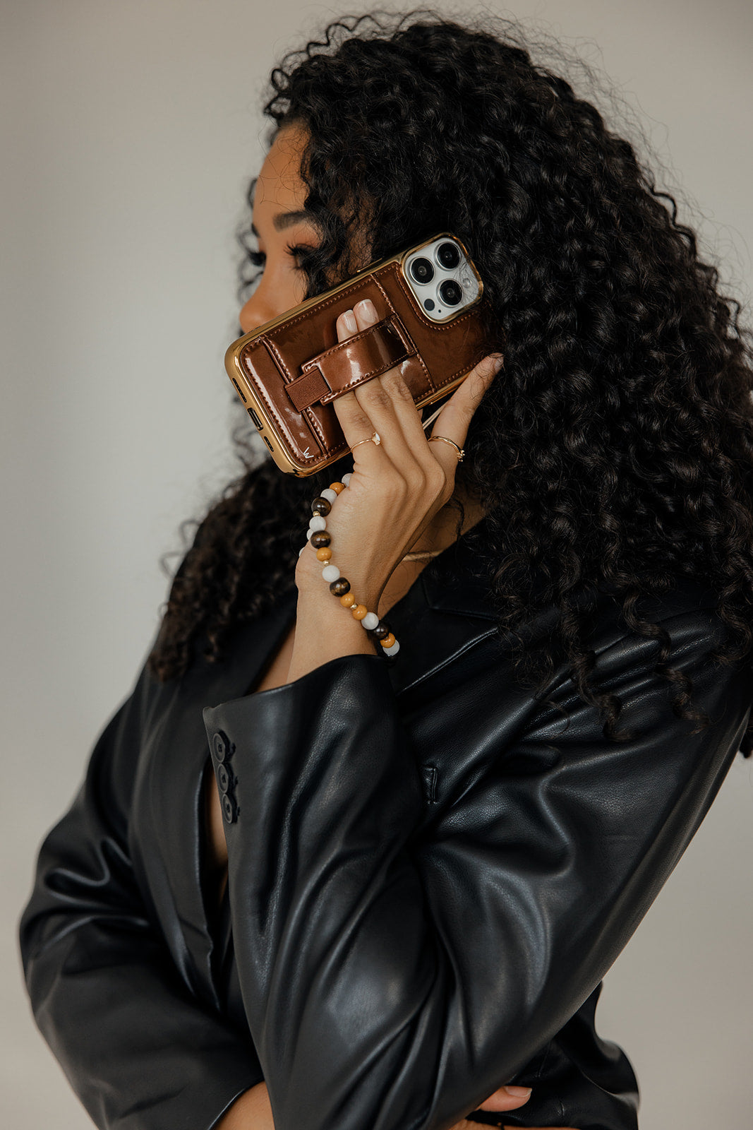Add this neutral beaded wristlet to your Walli Case for hands-free carrying!
